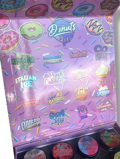 Donuts 1oz Glass Jars - Varity Pack 16 Strains in box - Empty Jars
