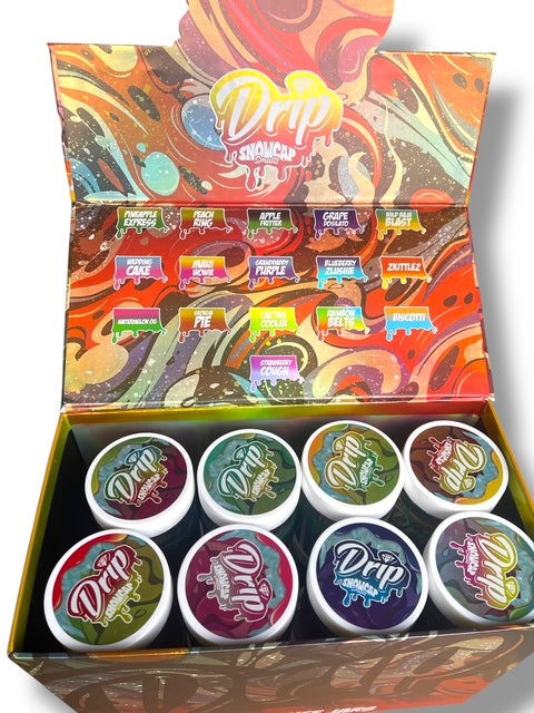 Drip Snowcaps Smalls 16-1oz Plastic EMPTY Jars - Varity Pack 16 Flavors in box 1 pound with outer box